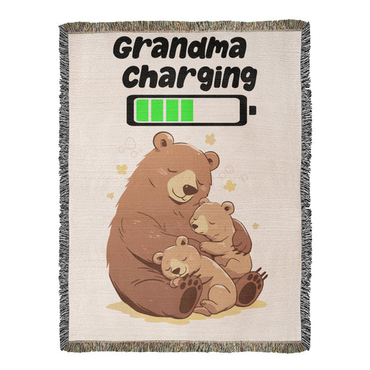 Grandma Charging Bear Blanket – Soft Fleece Throw for Grandmothers, Cozy Gift from Kids, Cute Grandma Bear and Cubs Design