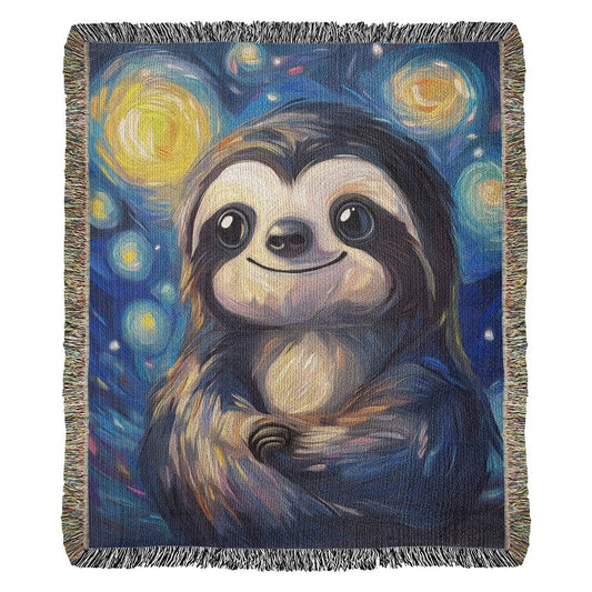 Starry Sloth Woven Blanket – Cozy Animal Art Decor with Whimsical Van Gogh Style